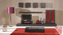 Móvel TV / Estante de Sala de estar moderna / contemporânea. Fabricada em madeira lacada ou carvalho cor natural e wenge. Mesa de centro com tampo em madeira. Gavetas da estante com fundos forrados a tecido, corrediças ocultas com amortecedor. Portas em MDF lacado ou em vidro que também pode ser lacado.