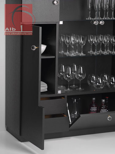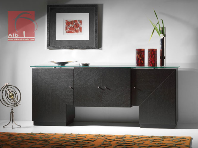 Sala de jantar moderna / contemporânea. Fabricada em madeira de carvalho cor natural e wenge. Mesa com tampo em vidro ou madeira. Aparador com fundos das gavetas forrados a tecido, corrediças ocultas com amortecedor. Cadeiras em madeira acabadas na cor da mesa. Os móveis de sala de Jantar devem condizer com a restante mobília. Os principais móveis de uma Mobília Sala de Jantar são a Mesa, as Cadeiras, um Aparador e um Espelho, depois podemos acrescentar uma Vitrine e um Móvel Bar, dependendo do tamanho do espaço.
